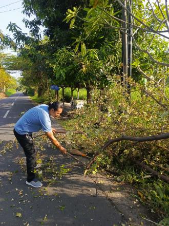 Dilalukan juga pemotongan dahan ranting yang menganggu jalan , agar tidak menganggu aktivitas pengendara .