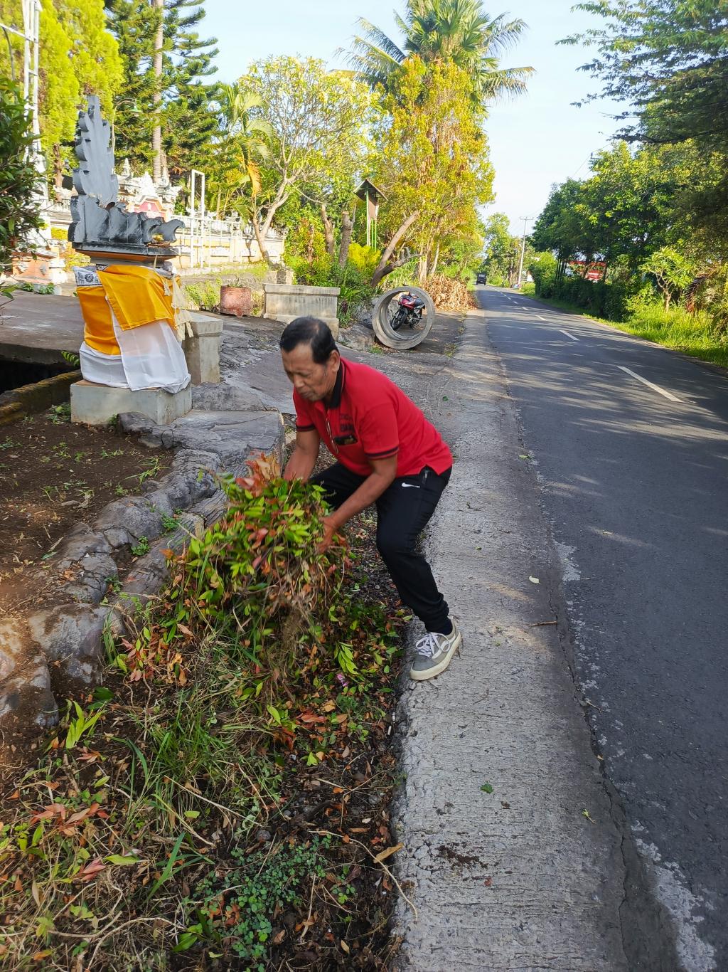 Kegiatan gotong royong ini dilaksanakan untuk mempringati rahina tumpek wariga.