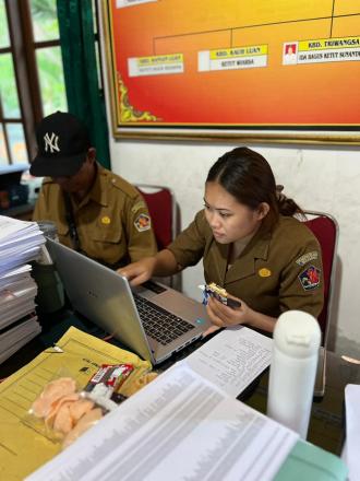 Operator desa jagaraga bersama 5 kelian banjar dinas berkordinasi terkait verifikasi data warga penerima Bantuan BLTS Kesra.